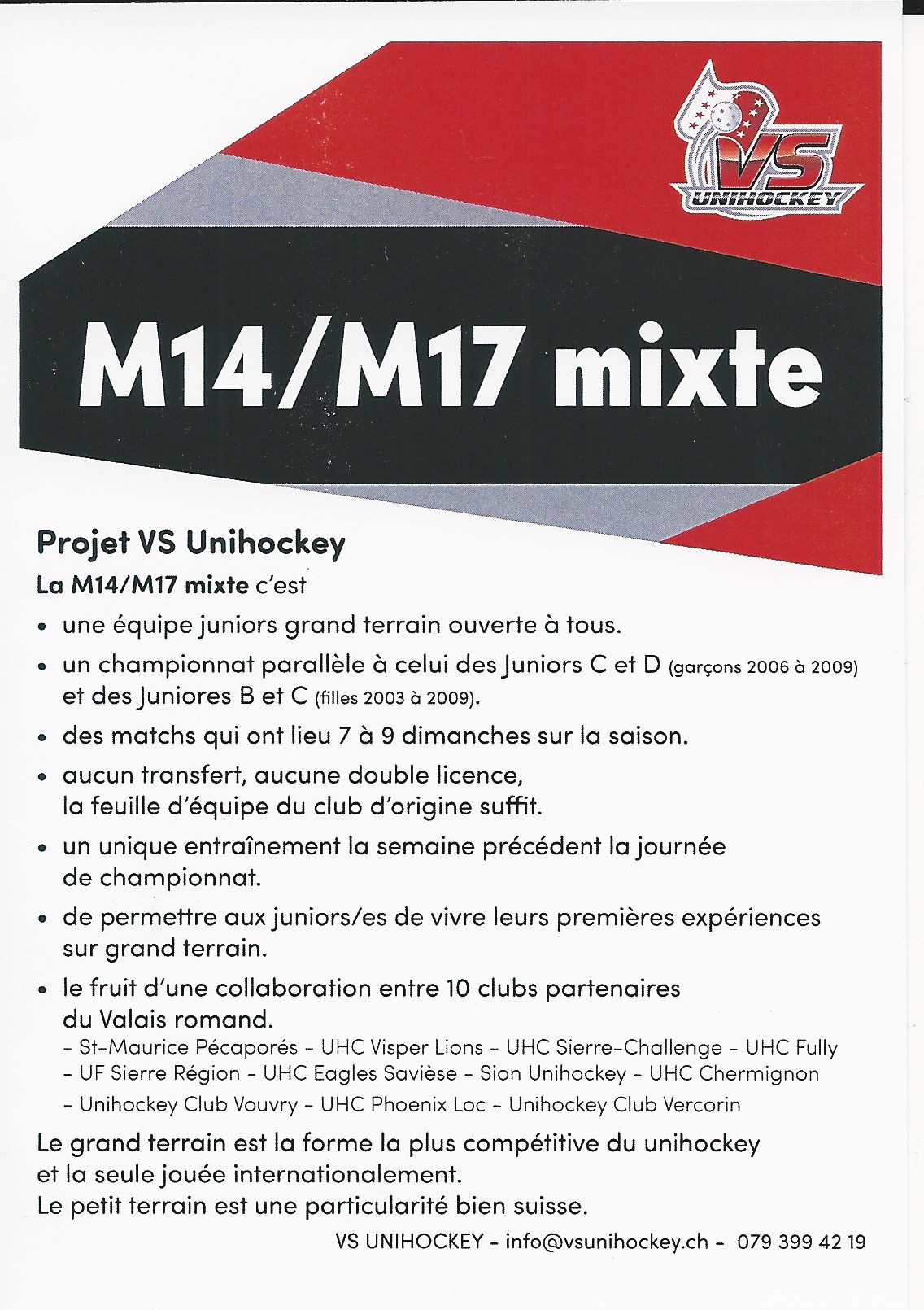 Cette saison encore, VS Unihockey en partenariat avec Sion Unihockey et Visper Lions mettents sur pied des communautés de jeu. Ces équipes ont pour but