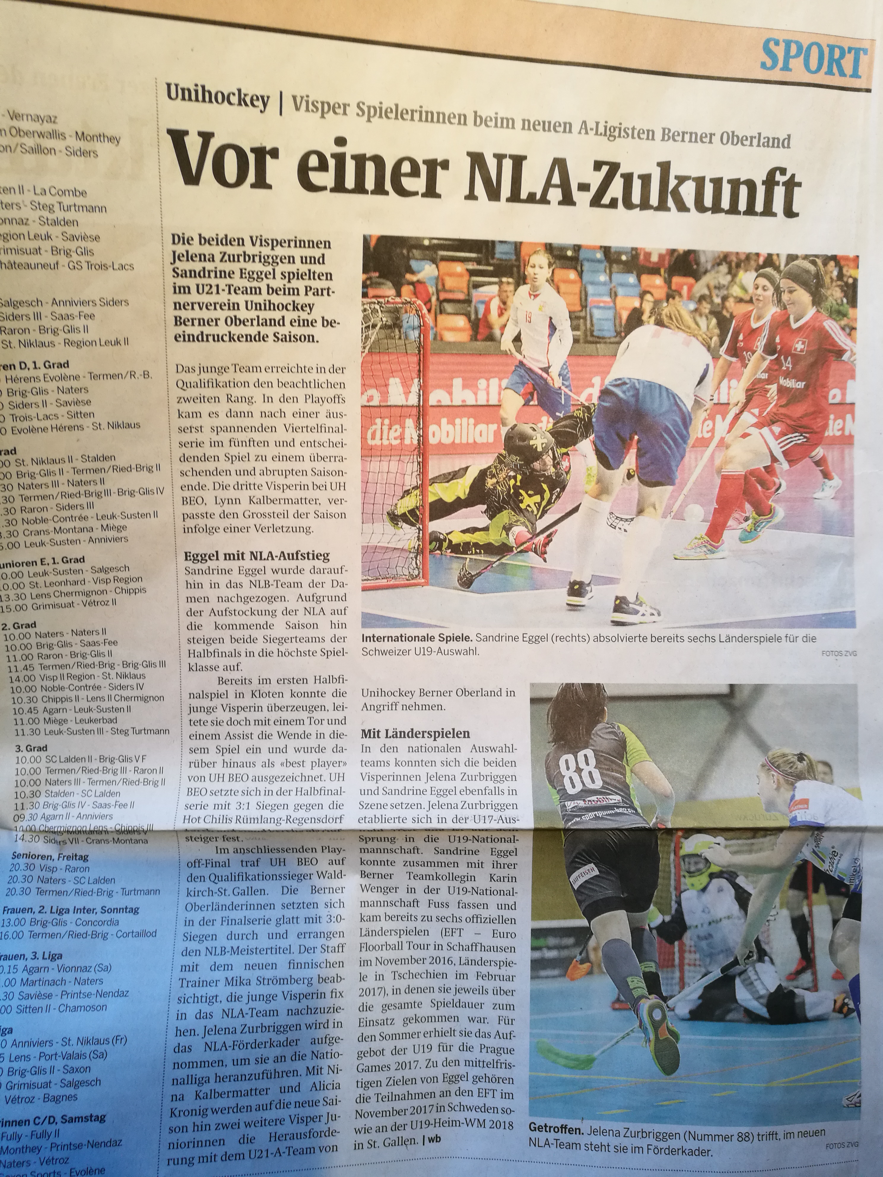 Die beiden Visperinnen Jelena Zurbriggen und Sandrine Eggel spielten im U21-Team beim Partnerverein Unihockey Berner Oberland eine beeindruckende Saison.