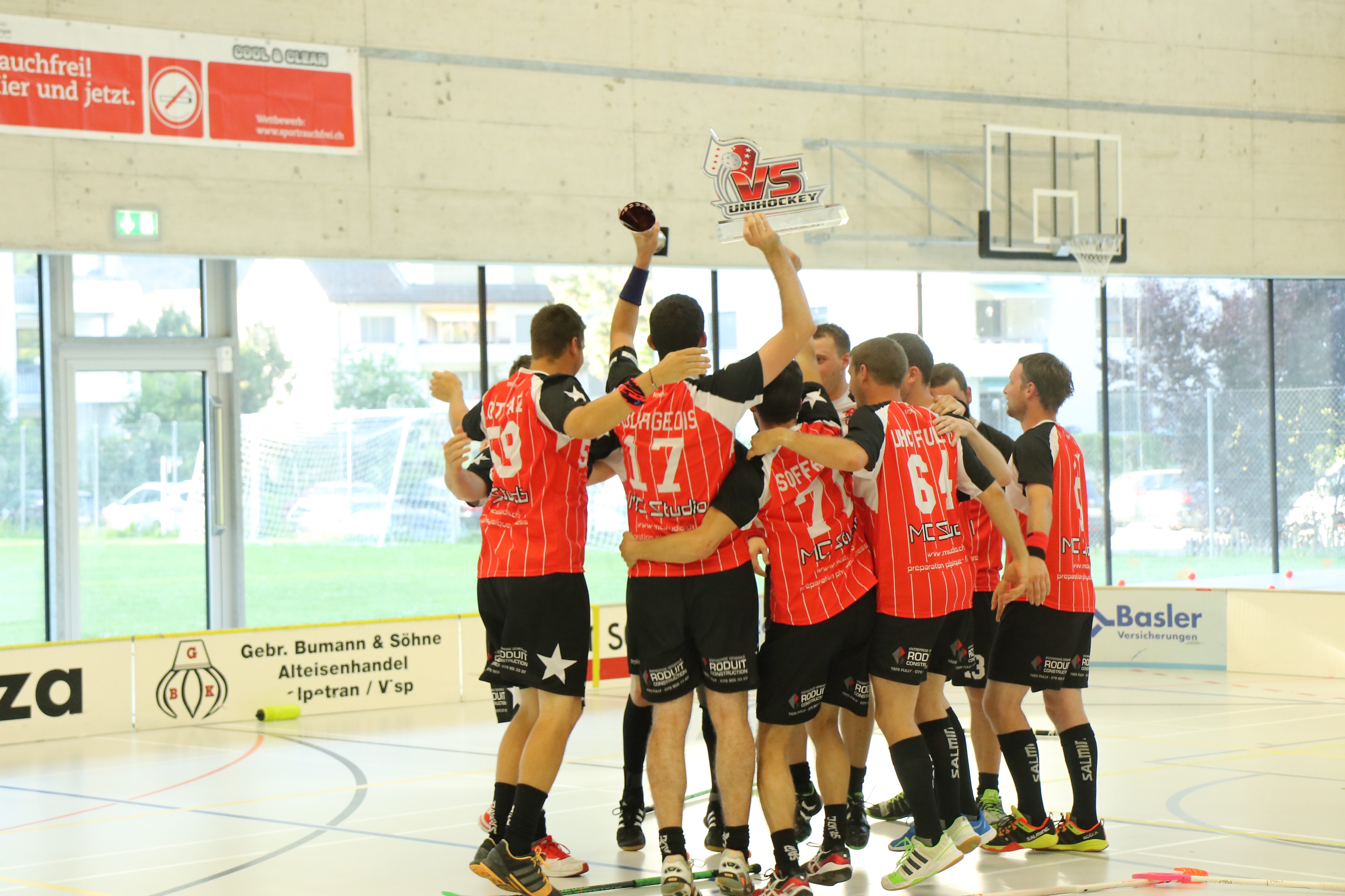 Auch bei den Herren strebten die Visper Lions die Titelverteidigung an. Die Herren des UHC Fully versuchten ihrerseits den 1. Cupsieg zu realisieren. Das Startdrittel ging eindeutig zugunsten der Unterwalliser aus. Resultatmässig vermochten die Visper den Rückstand mit 6:9 in Grenzen zu halten. Im Mitteldrittel zeigte sich ein differenziertes Bild. Nun gaben die Grossfeldspieler den Ton an. Nach 40 Minuten stand es leistungsgerecht 11:11 Unentschieden. Im Schlussdrittel konnten die Visper zunächst bis auf 14:11 davonziehen. Die Spieler von Fully drehten das Spiel in einer dramatischen Schlussphase und setzten sich schlussendlich mit 15:14 durch. Damit krönte sich der UHC Fully eine tolle Saison. Die Herren sind mit der 1. Mannschaft souverän in die 2. Liga Kleinfeld aufgestiegen und sind nun erstmals Walliser Cupsieger.